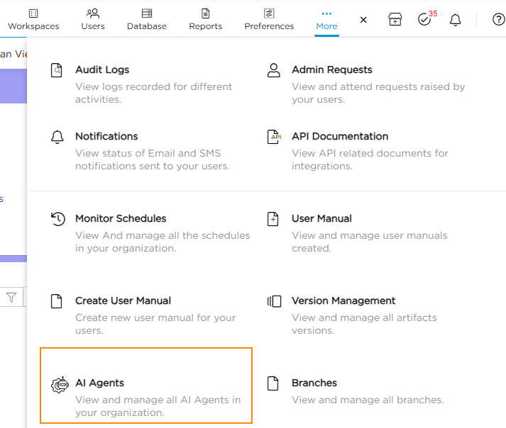 Agents shown in the Select Agent dropdown are created and managed outside workflows. To create a new agent: