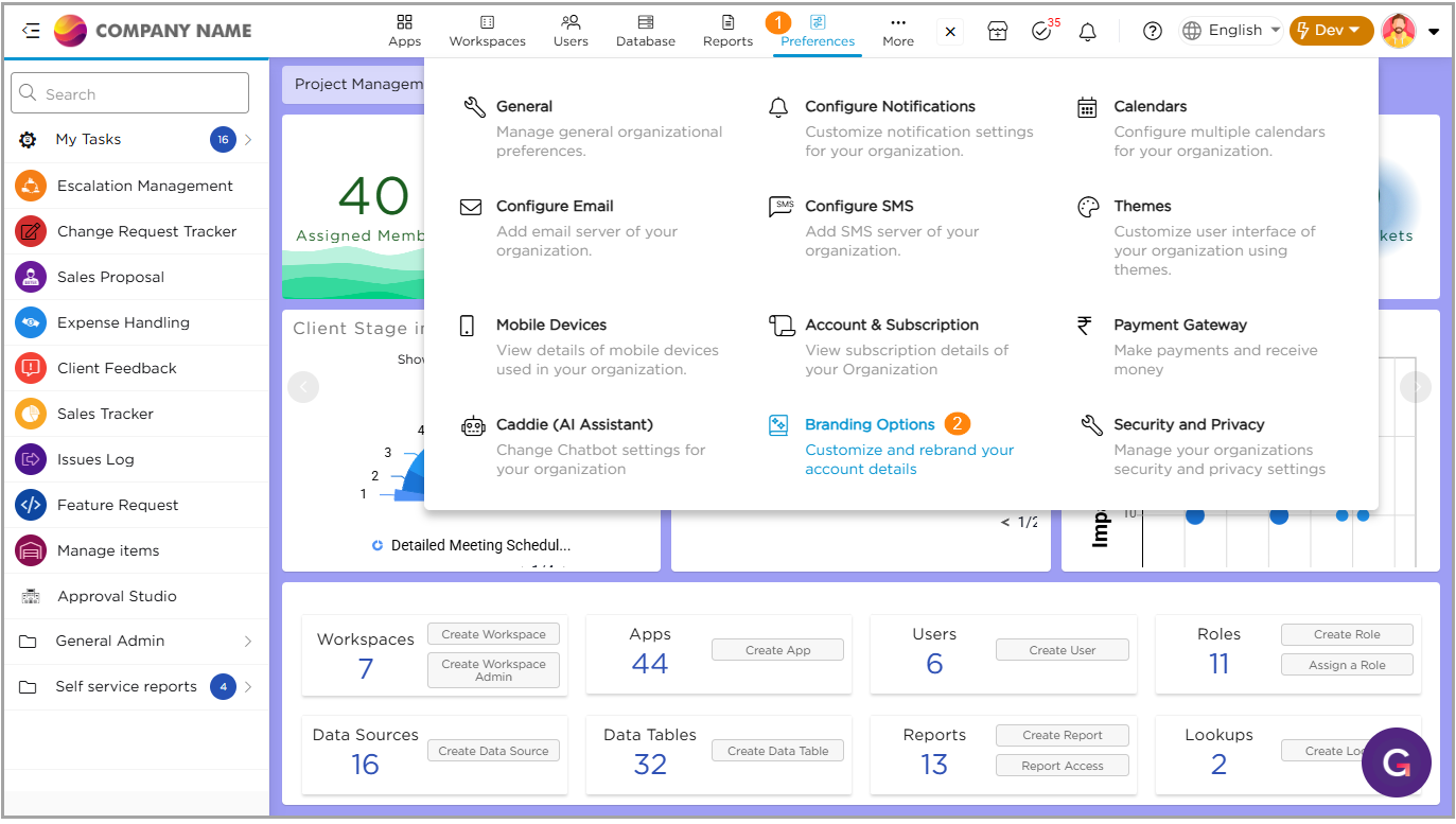 Branding Options let you define how the platform looks and functions for your organization. You can upload logos, manage visibility of interface elements like icons, menus, or help sections, and control user access preferences.