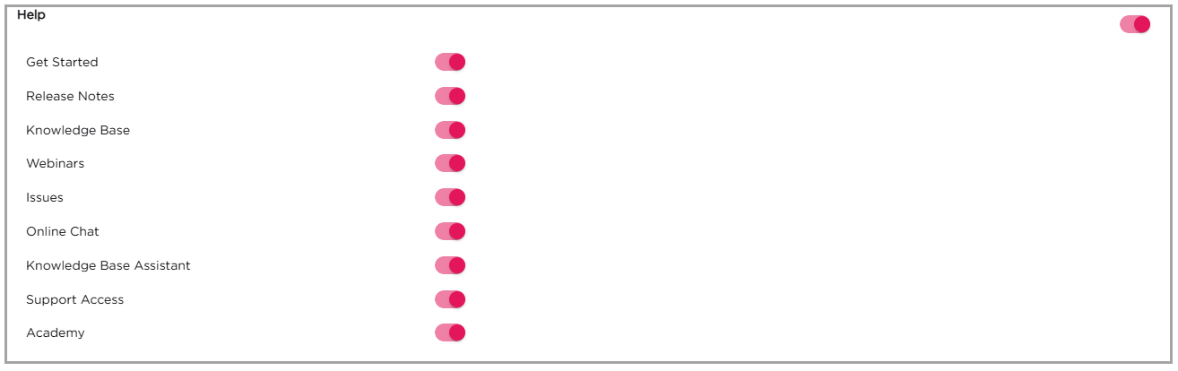 This section lets you control which profile settings users can access or change on both the web and mobile apps. Each option can be turned on or off using a toggle switch.