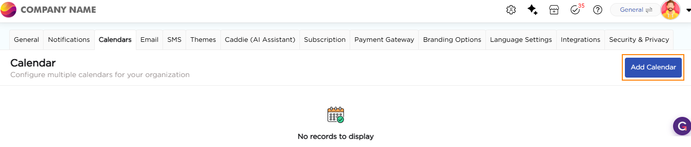 2. On the Calendar page, click Add Calendar.