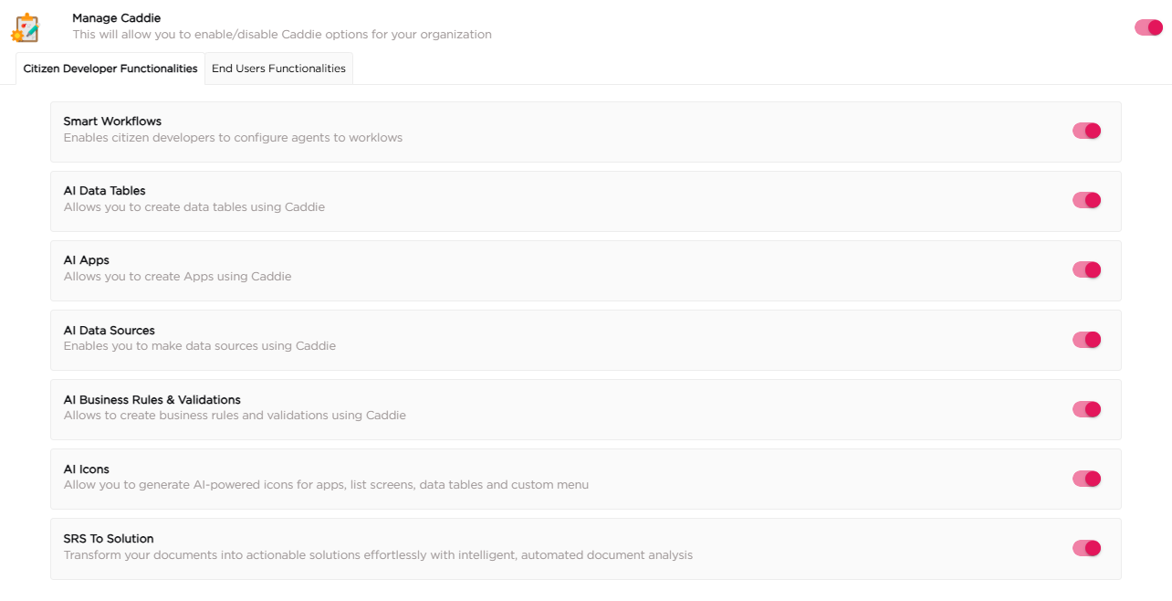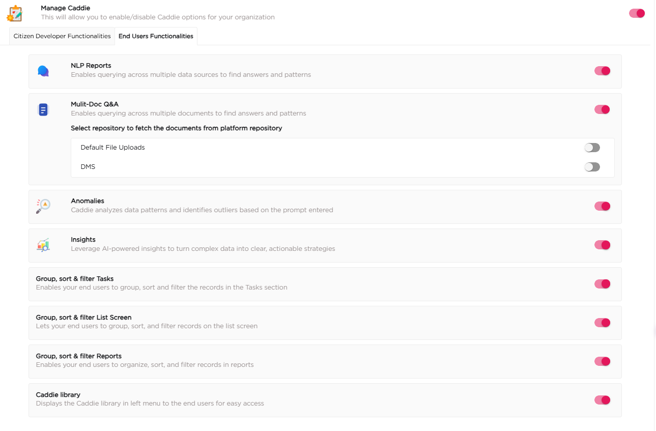 | 5 | AI Business Rules and Validations | Create business rules and validations using Caddie. |