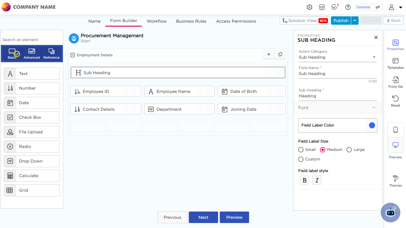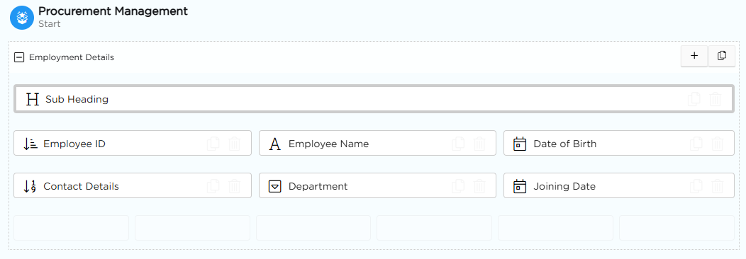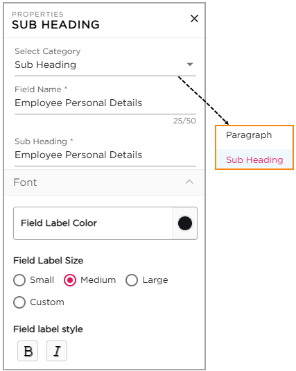 1. Sub-heading: Used to insert a sub-heading in the application, improving the user experience.