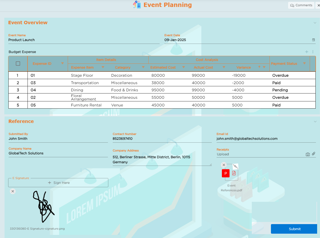 The Grid field is used to capture and manage multiple related records in a table format. You use it when one form needs to store repeating data such as line items, tasks, inventory entries, or logs.