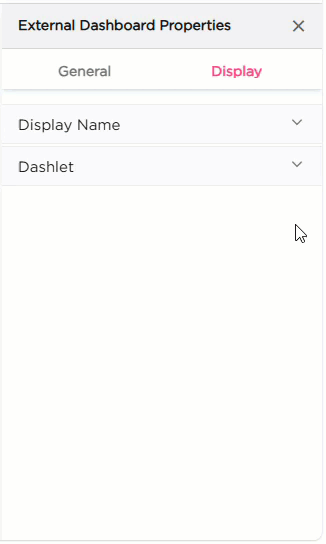 | 3 | Display Name | Enter the name that should appear on the External dashlet |