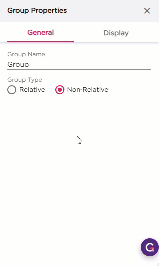 | 1 | Group Name | Enter the name you want to show on the group. The name appears on the group header on the canvas |
