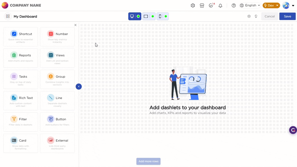 | Shadow Effect | Add a shadow to the dashlet. | |