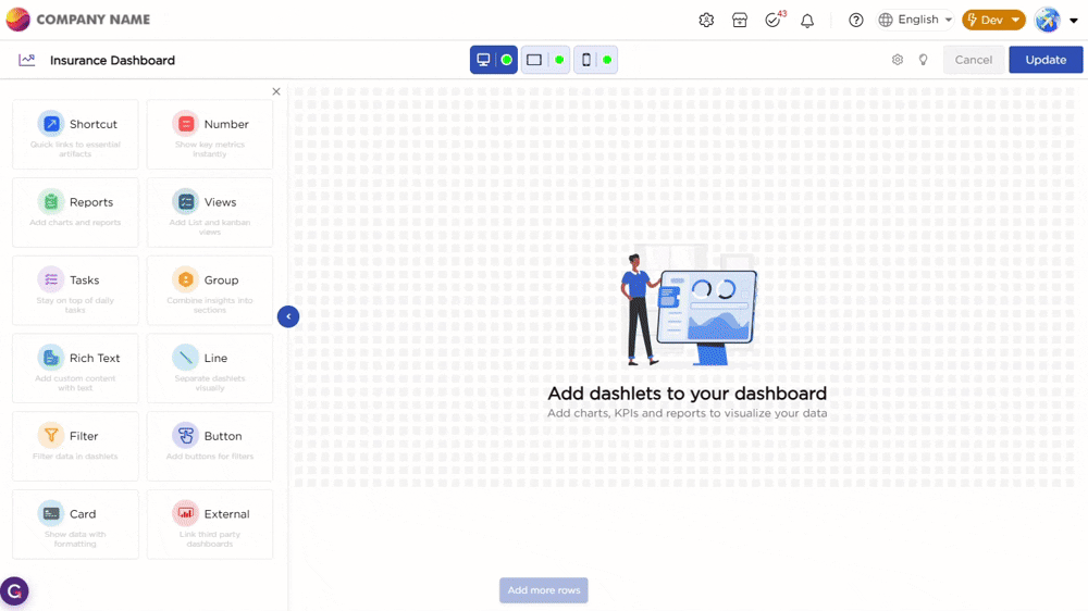 | Spacing | Add spacing inside the dashlet. |