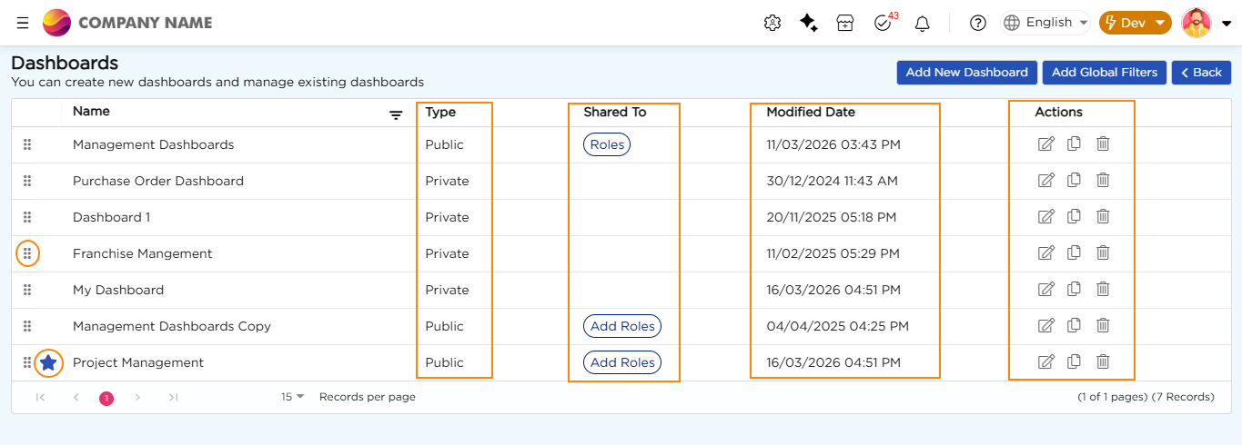 You can also change the order of dashboards by dragging them to a new position in the list. This helps keep frequently used or important dashboards at the top for easy access.