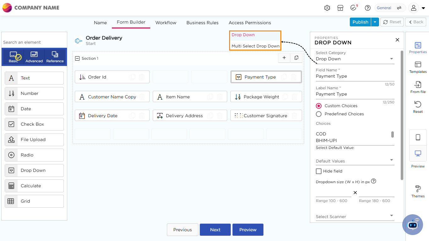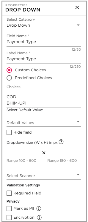 Drop-down Size: With this CDs can customize the size of the drop-down by specifying the desired height and width.