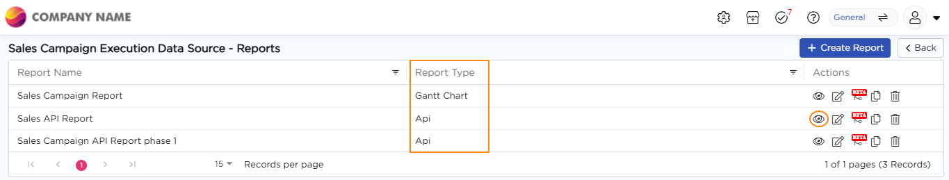 5. You’ll be redirected to the Reports Page, showing a list of all associated reports.