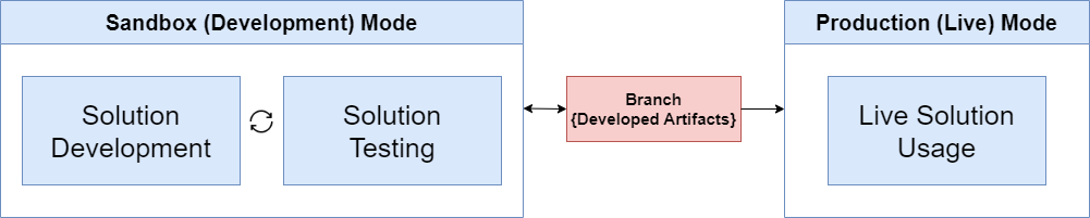 7.In Sandbox, since all the artifacts don't move to the Production (Live) stage instantly after creating them, they get parked in a space called Branches till the solution/artifact is deployed to the Live environment for real-time usage.