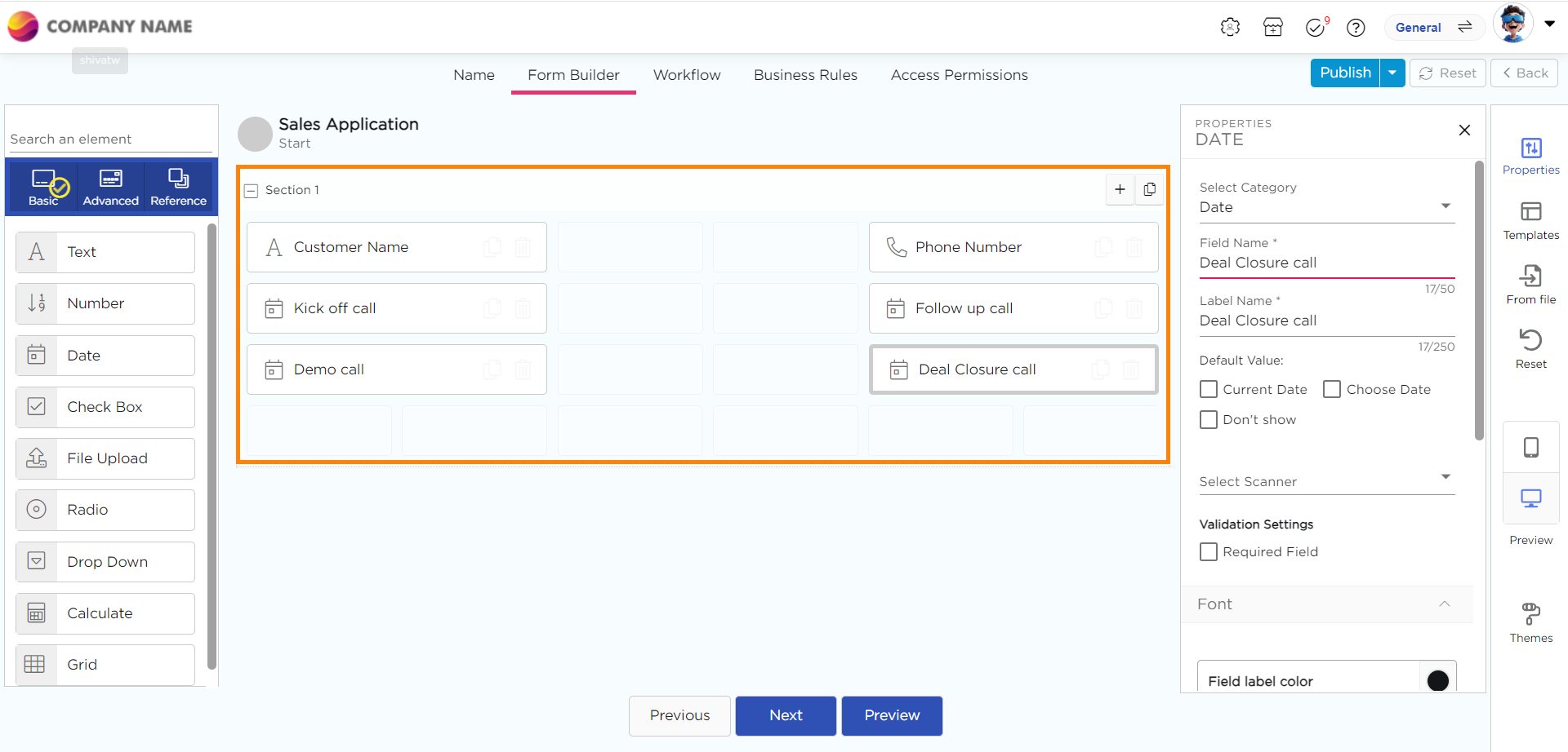 Sales representatives are required to maintain call recordings and track follow-up call dates after completing a Kick-off call with a customer. To simplify this process, they need to submit all the details about the Kick-off call through an app. In this app, when they enter the date of the Kick-off call, the app should automatically calculate and populate dates for all the other follow-up calls based on predefined conditions for each step in the sales process. This automation would help streamline the follow-up process and ensure timely communication with customers.
