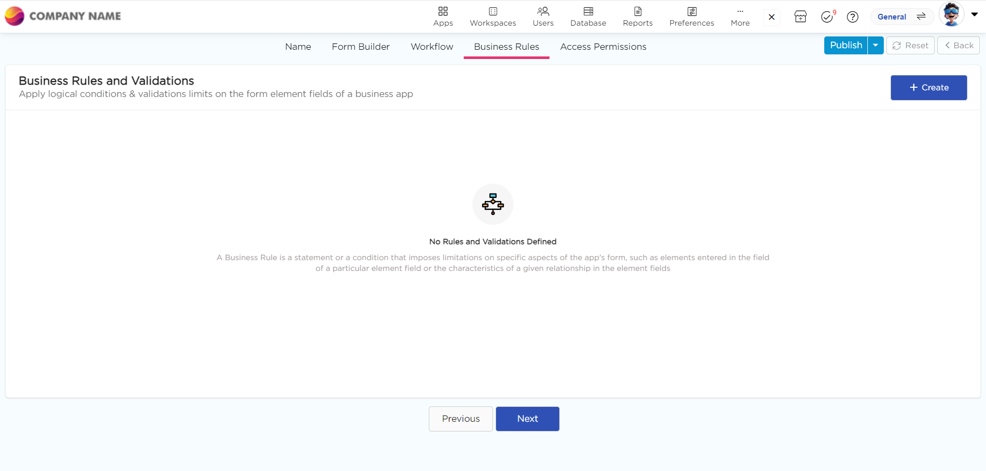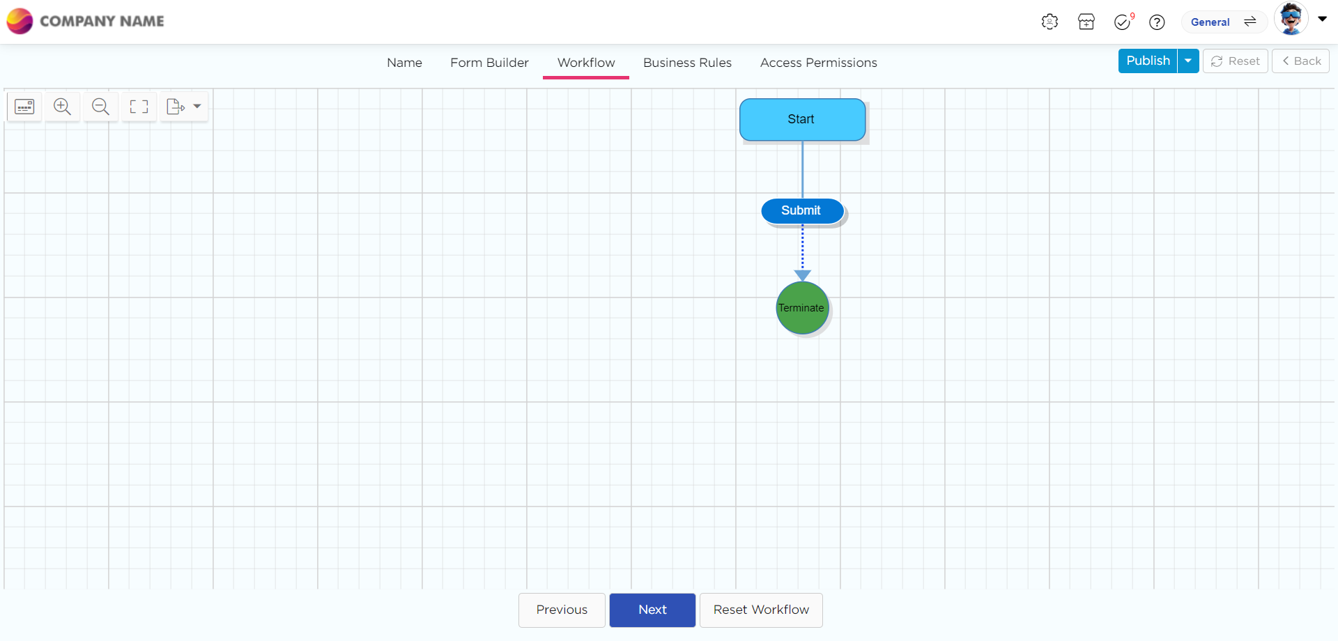 2. Workflow: Configure the workflow to manage the app's processes.