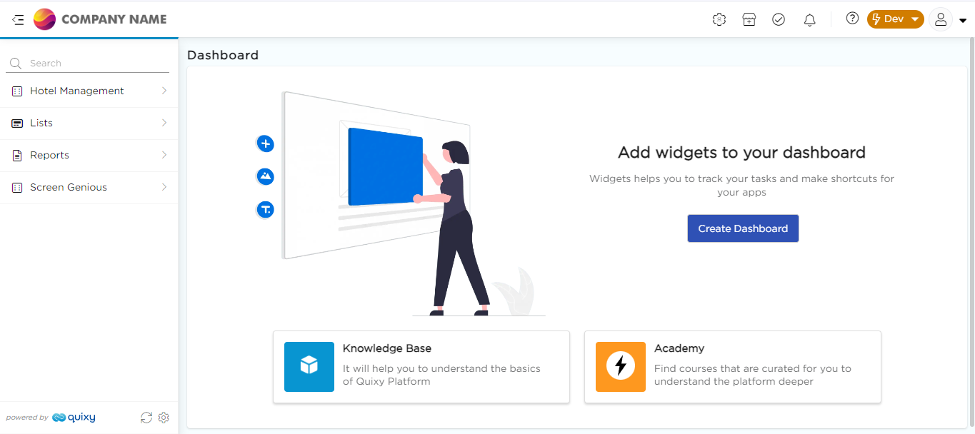 This default dashboard is designed to provide users with an initial understanding of what the platform can offer, as well as to encourage them to customize the dashboard according to their needs. In addition, it provides learning resources, such as an Academy or Knowledge Base, to help users get started with using the platform.
