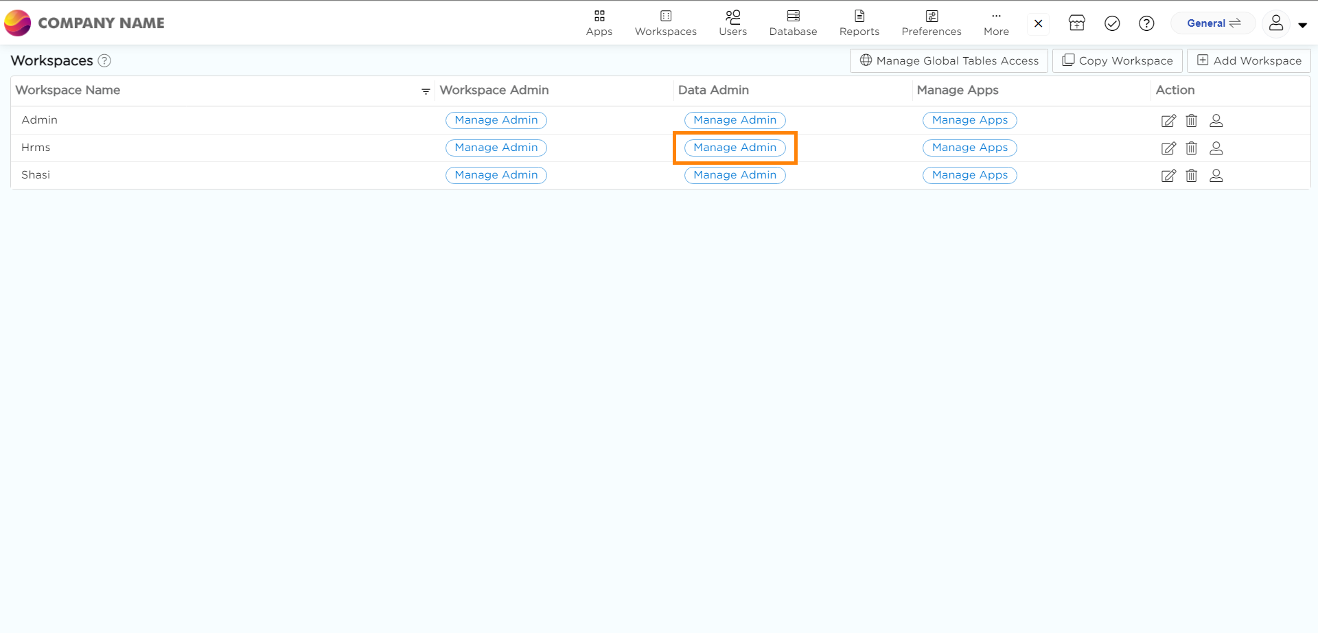 Data Administrators have the ability to manage data in Data Tables within specific workspaces. However, some data tables are not limited to a single workspace but operate at the organizational level. This means that these data tables can be accessed across all workspaces. To appoint a Data Administrator for such Global Tables Access, follow the guide below: