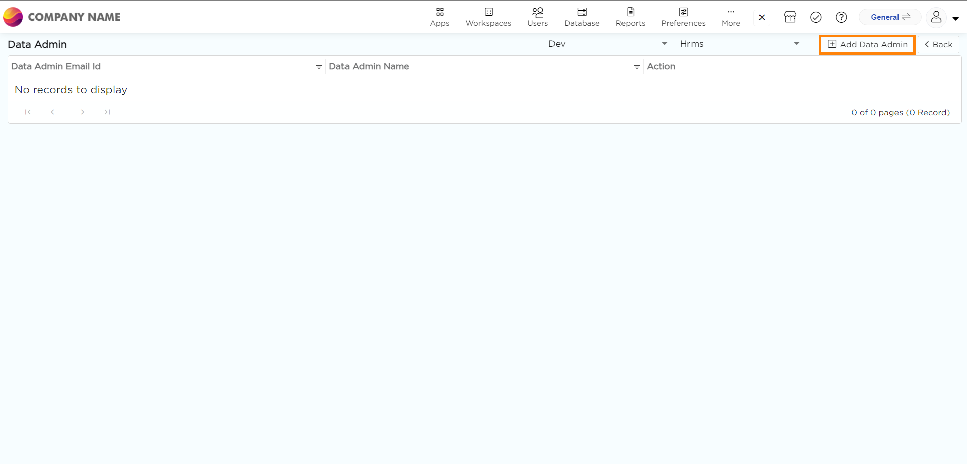 4. Click Add Data Admin, on the top right corner.