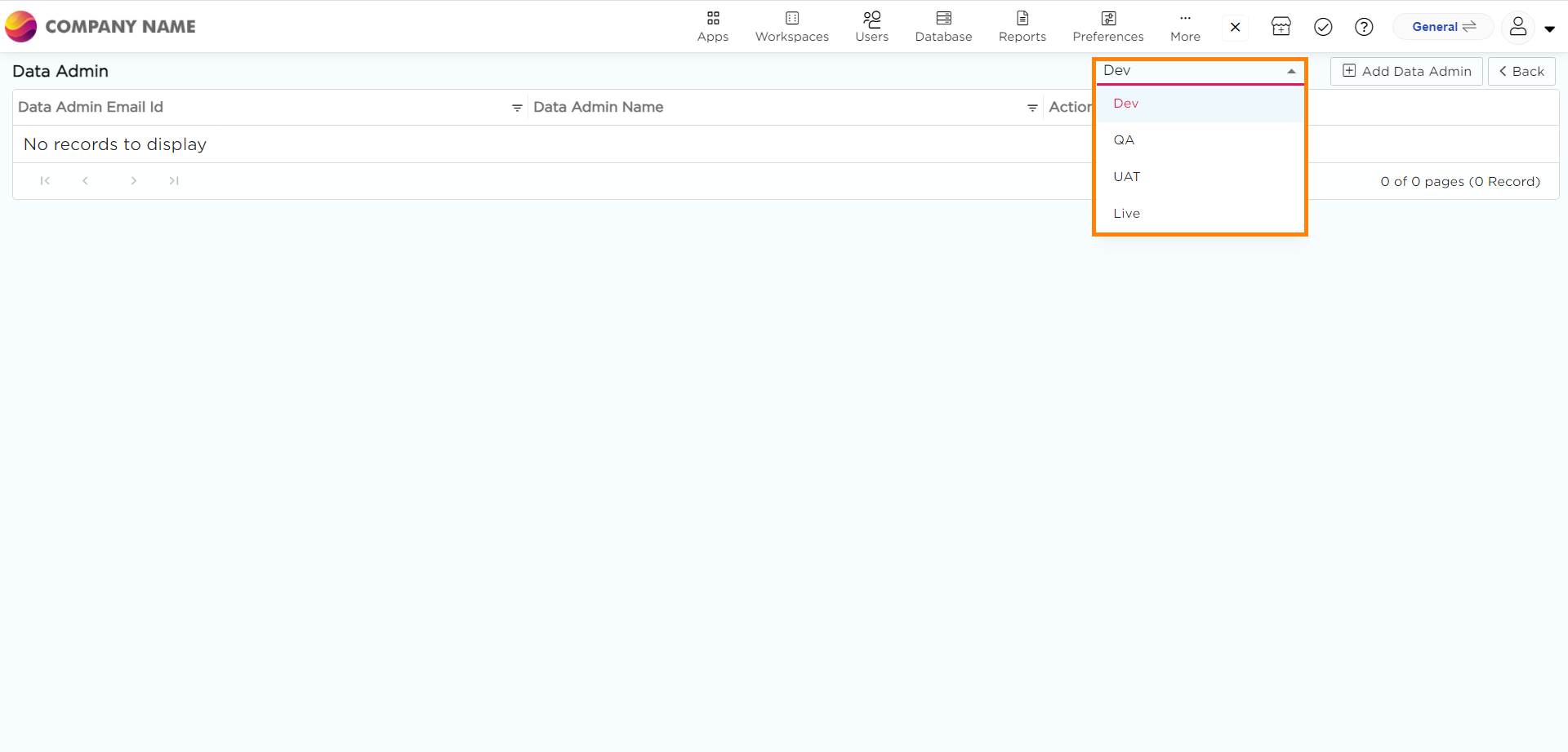 - Assigning a Data Administrator for the QA, UAT, or Live stages without also designating one for the Dev stage constitutes an oversight. It is imperative to appoint a Data Administrator for the Dev stage before doing so for the remaining three stages.