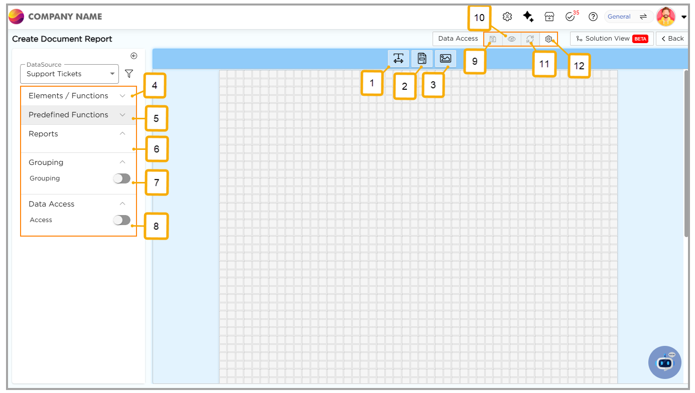| 8 | Data Access | After selecting all the required elements and functions, data access is given by selecting a user from the drop-down to give the required access. This enables only that user to see/access the report that has been configured. |