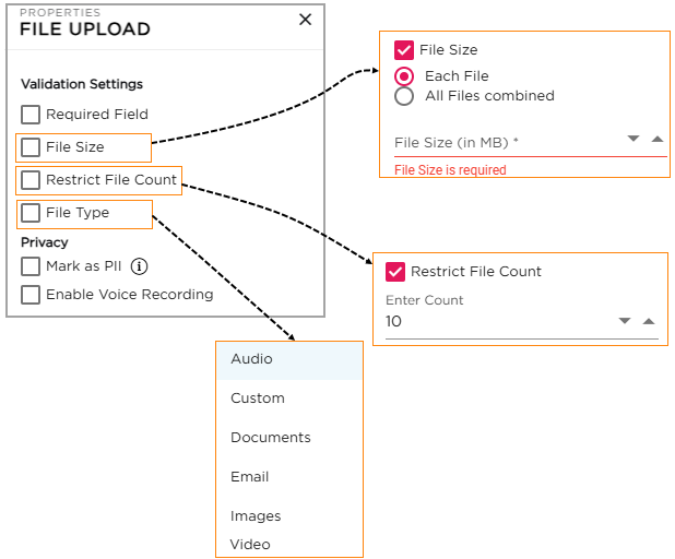 File Upload enables users to choose and upload files from their local devices, including documents, images, videos, and more. We can either download individual files or use the "Download All Files" to download multiple files in a file upload at once in a single zip file.
