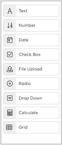 - Textbox: Allows users to enter text or alphanumeric characters.