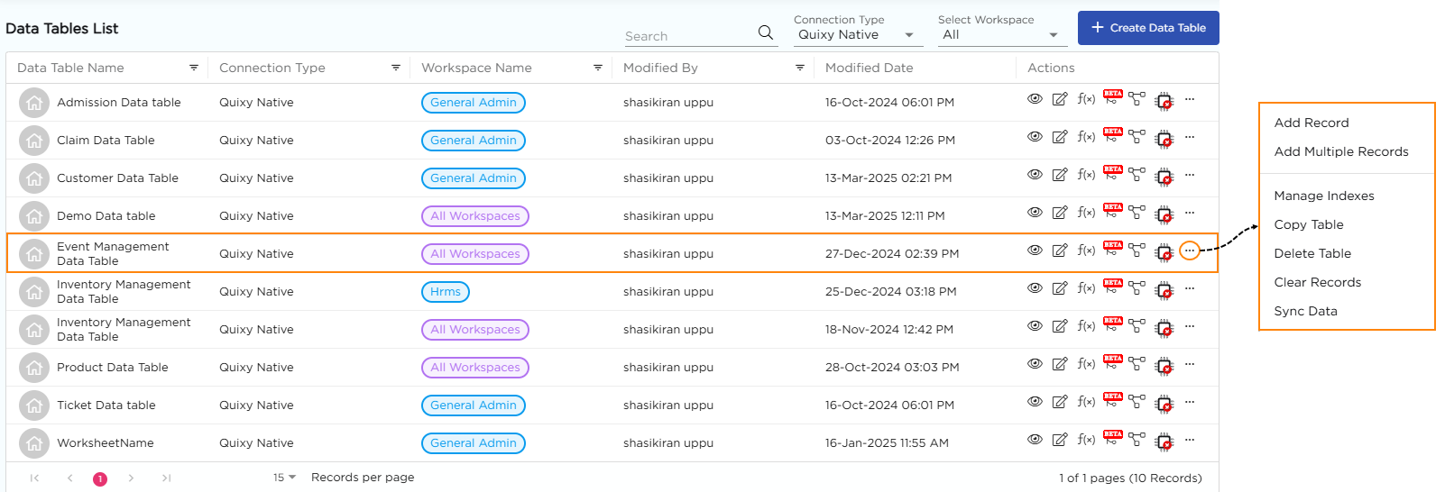 Return to the Quixy platform and click Upload Excel.