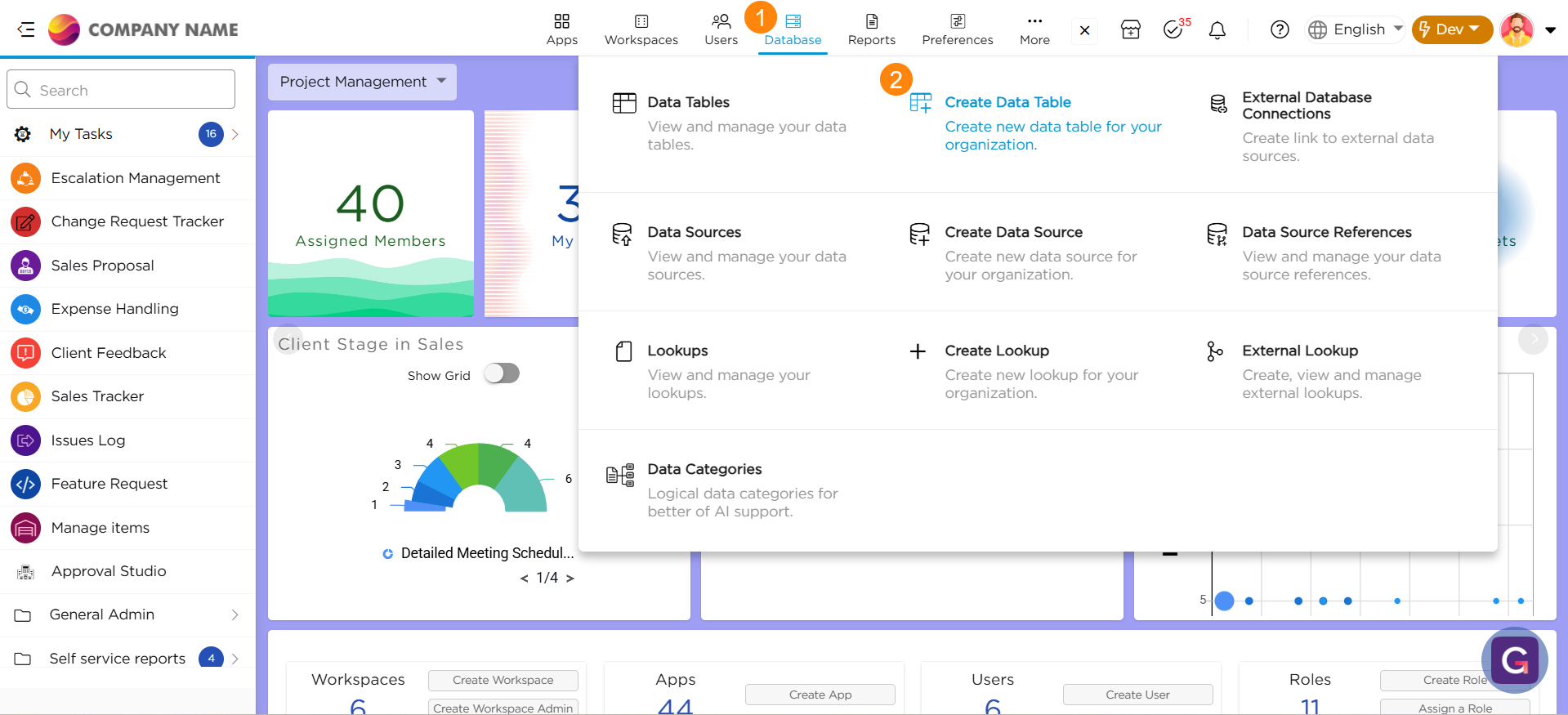 1. Navigate to Admin Menu → Database → Create Data Table