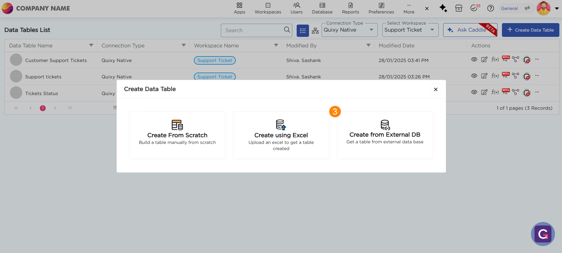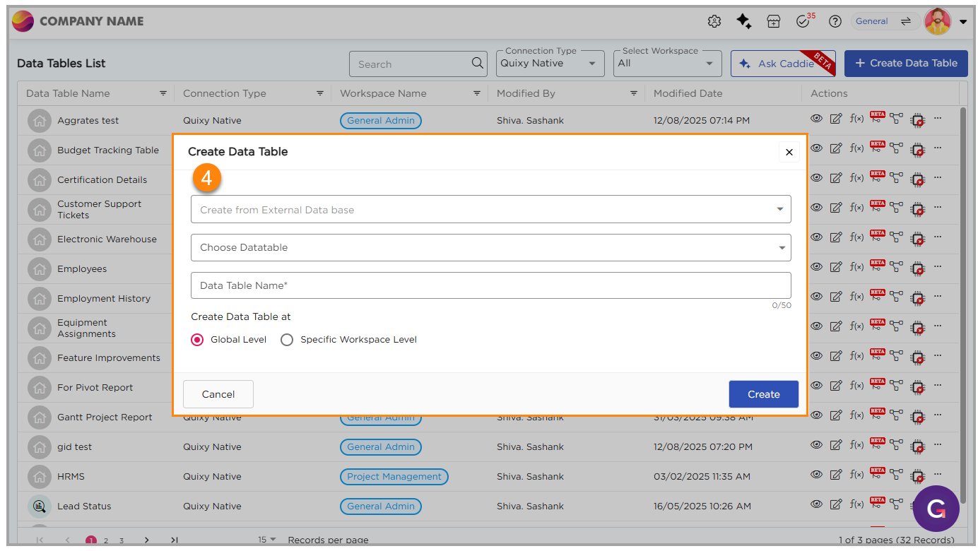 Specific Workspace Level: A workspace-level data table is confined to a specific workspace. It can store or retrieve data only from applications linked to that same workspace.