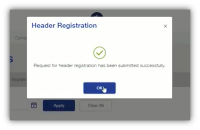 You can always check the status (Approval Pending, Approved, Rejected, so on) of the registered Sender ID. The approval process will take 24 hours or more. The Sender ID should resemble the organization's name.