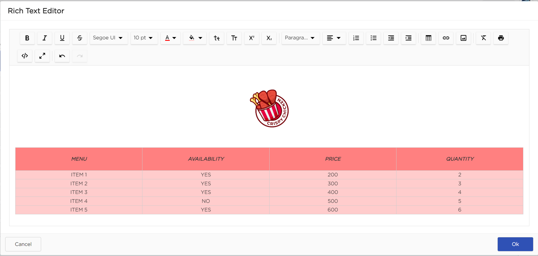Rich Text: Rich Text Editor allows users to input, edit, and format text with a variety of formatting options. It enables users to apply styles such as bold, italics, underline, change font styles, sizes, colors, create lists, and more, making it suitable for creating richly formatted documents and content.