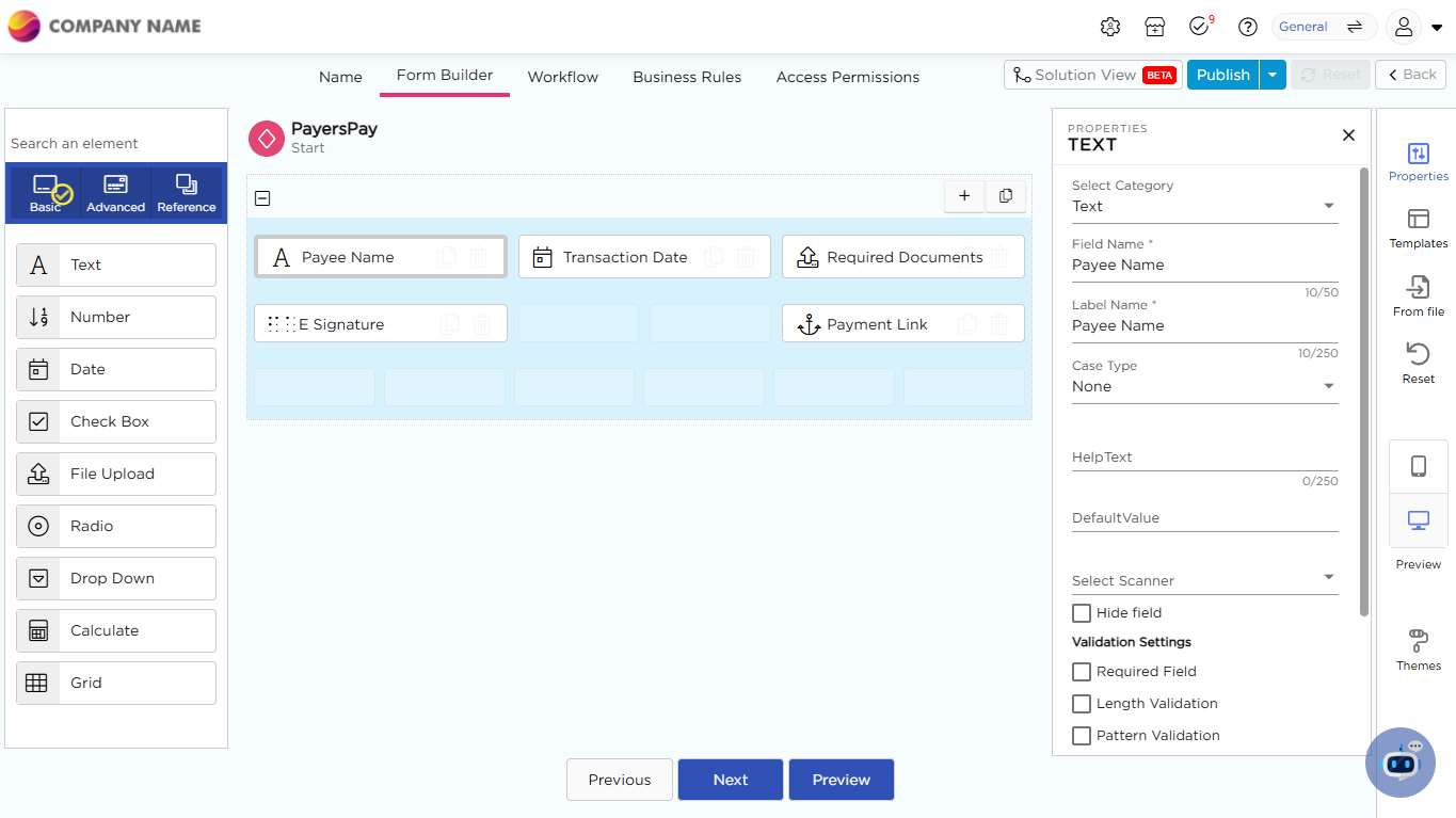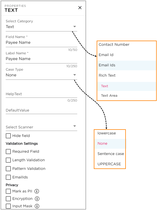 Length Validation: Define minimum and maximum character limits for a field to ensure the entered value meets specific requirements.