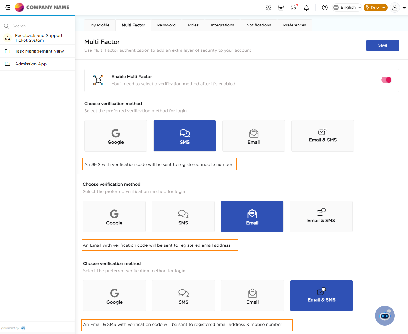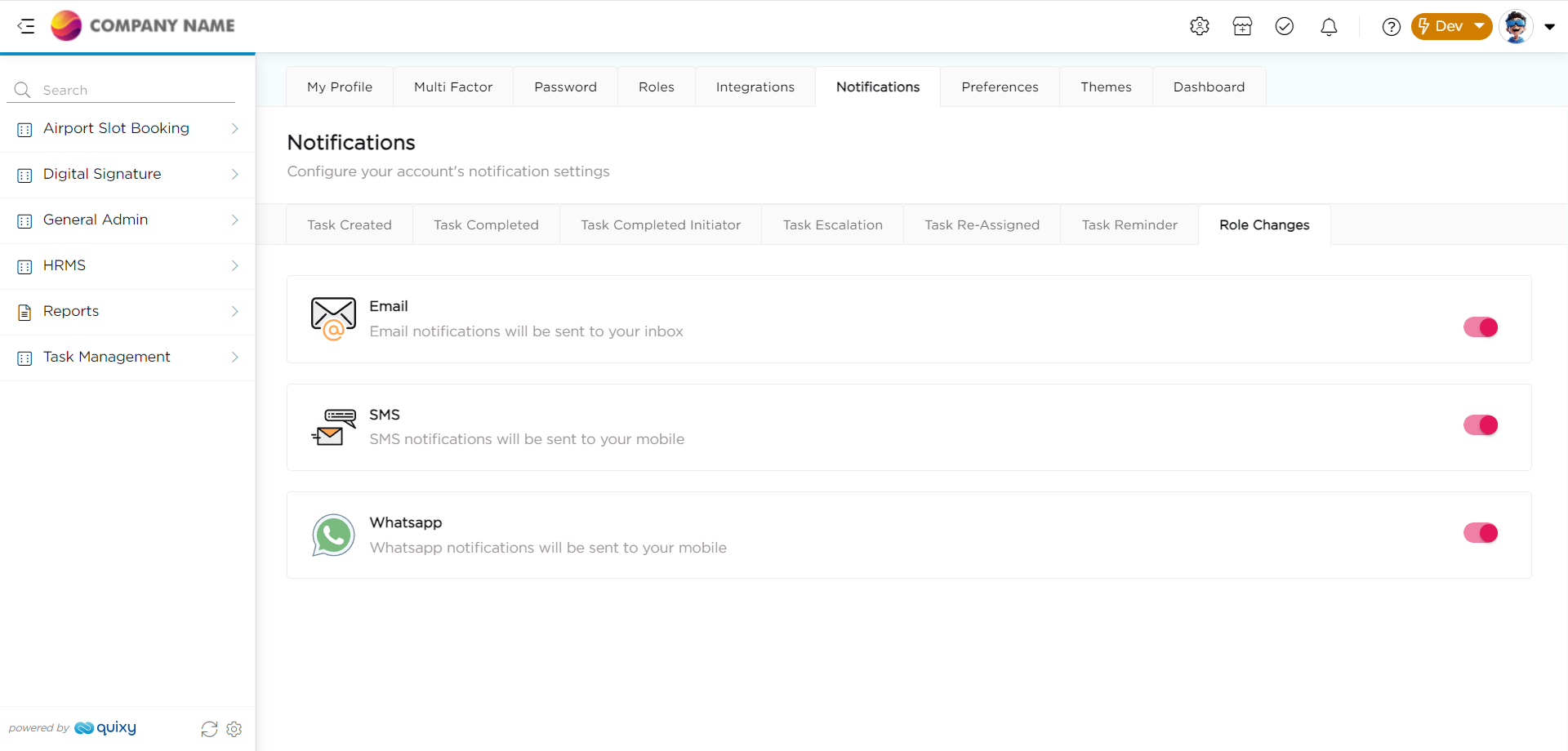 Whenever a new role is assigned to the logged-in user or there are changes or removals of existing roles, an email and SMS notification will be sent to keep the user informed about these updates. An Email & SMS notification will be sent to the logged in user, when a new role is assigned, or the existing role is changed/removed.