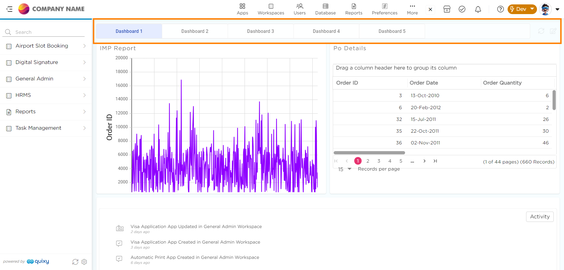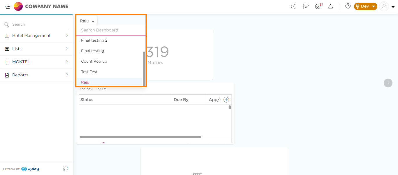 This feature allows you to select the layout of your dashboard list, choosing between standard view or tabs view. In the standard view, a drop-down list of dashboards is presented, and you can select one from the list. In the tabs view, dashboards are presented as tabs, making it more convenient to switch between them with just one click.
