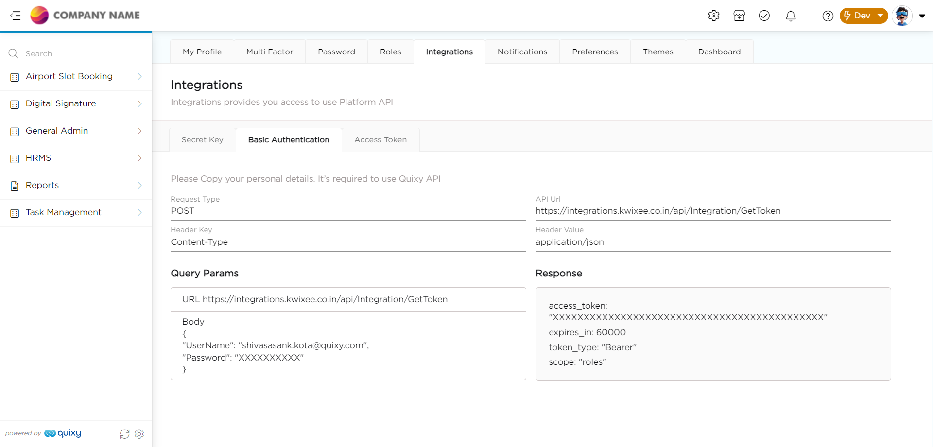 The access token serves as a key that allows a 3rd party or application to access and interact with Quixy's APIs on behalf of a user or application. The token has an initial validity period. After the specified number of days, the URL expires, which results in the connection expiring.