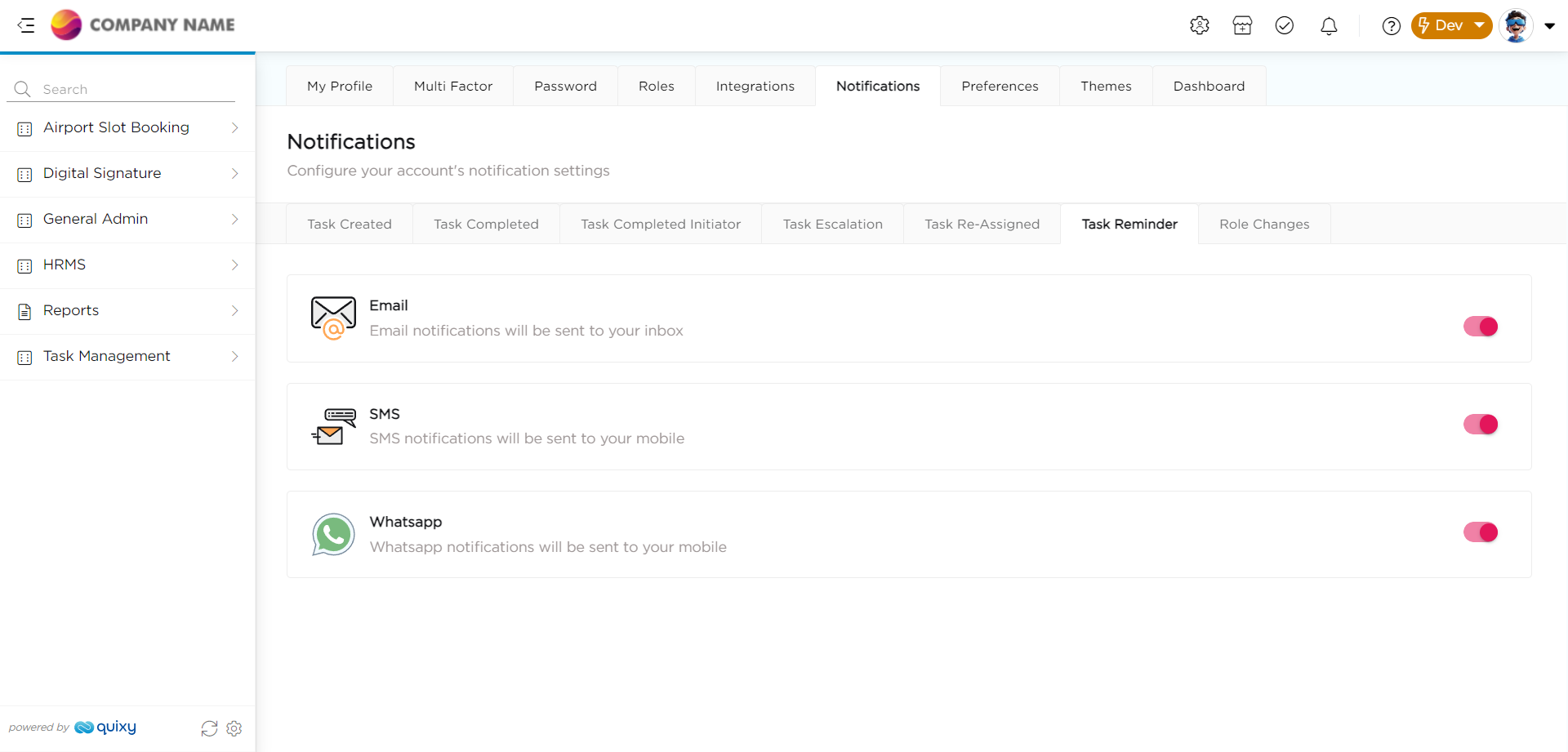 When a task is assigned to the logged-in user, they will receive an email and SMS notification reminding them to complete the task within the specified time period.