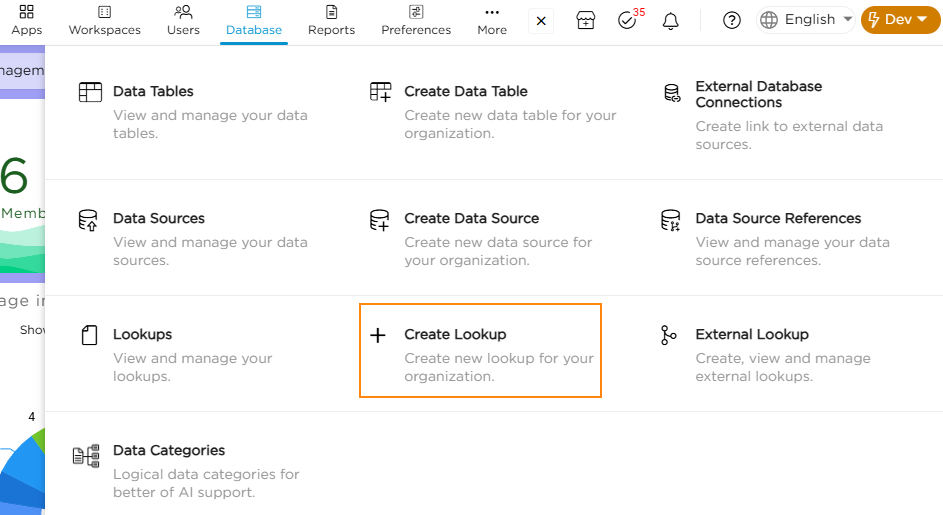 Use lookups to create reusable lists of values that appear as dropdown options while building applications.