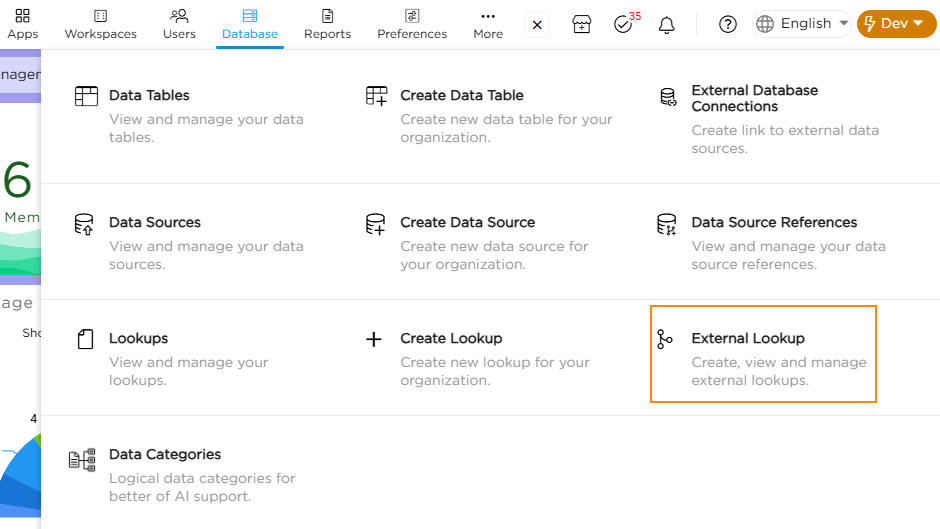 The External lookup feature allows you to retrieve single-columned values (such as names, city names, etc.) into a Quixy application from any third-party database with an Open/Rest API.