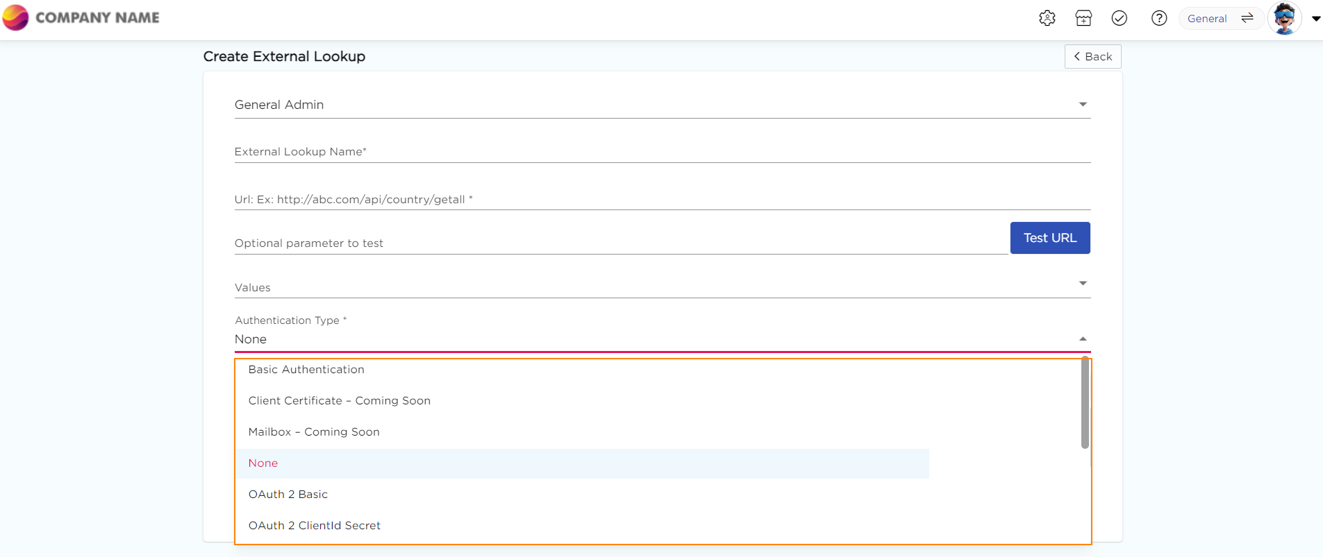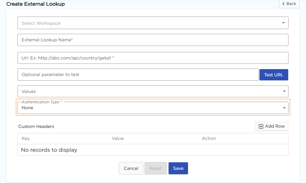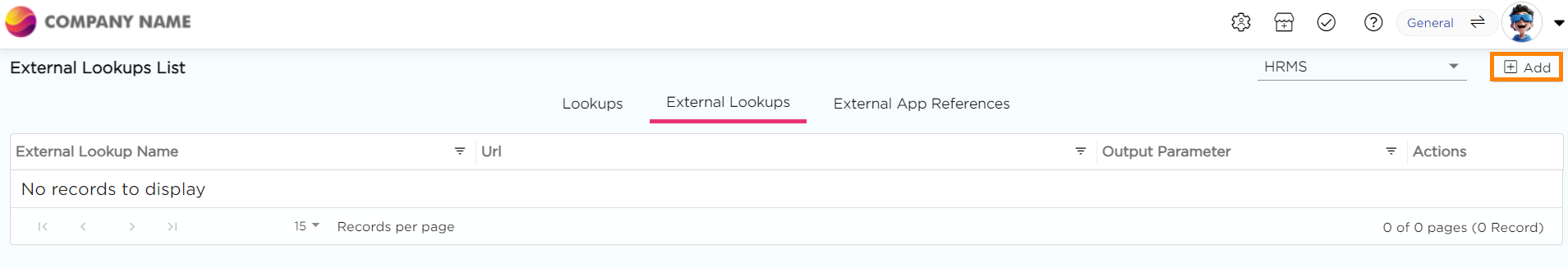 3. Click on the Add button. You will land on the Create External Lookup page.