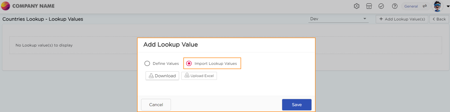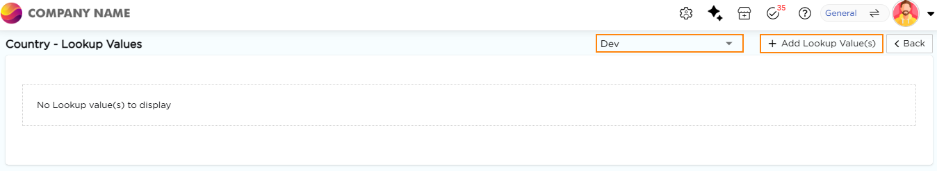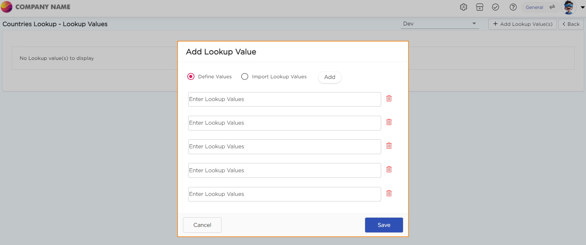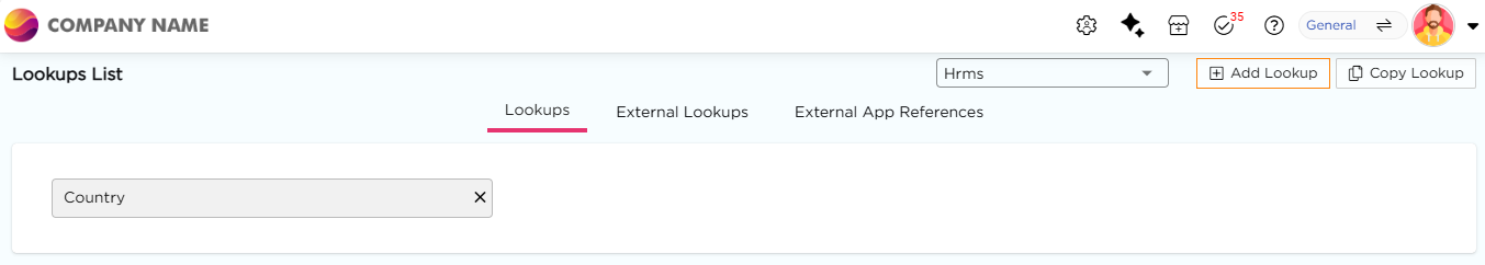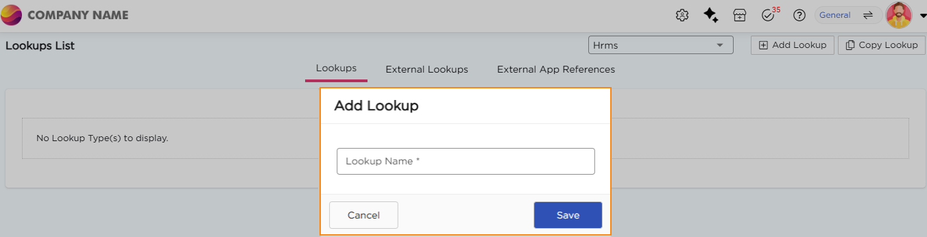 Configure Lookups lets you add, edit, and manage values within an existing lookup. These values appear as selectable options in drop-down fields across applications.