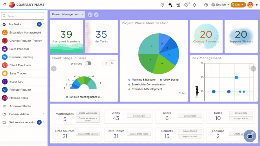 When a user selects a secondary language, Quixy automatically translates all platform labels into that language. This includes existing labels and any new labels added later, such as those in apps, reports, data tables, and other artifacts.