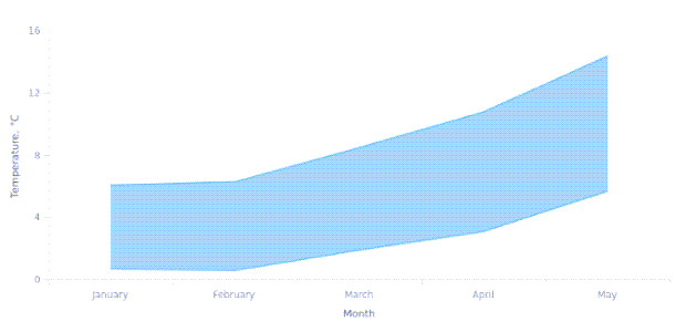 An Area Chart displays values as a filled region under a line. It shows how a numeric value changes across categories or over a sequence, while also highlighting the magnitude of change using shaded areas. This makes it easy to see trends, growth, decline, and overall volume at a glance.