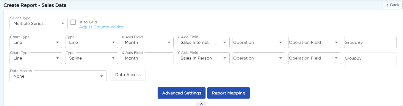 For details on Advanced Settings, Report Mapping, and GroupBy configuration, refer to the Chart Configuration Overview article.