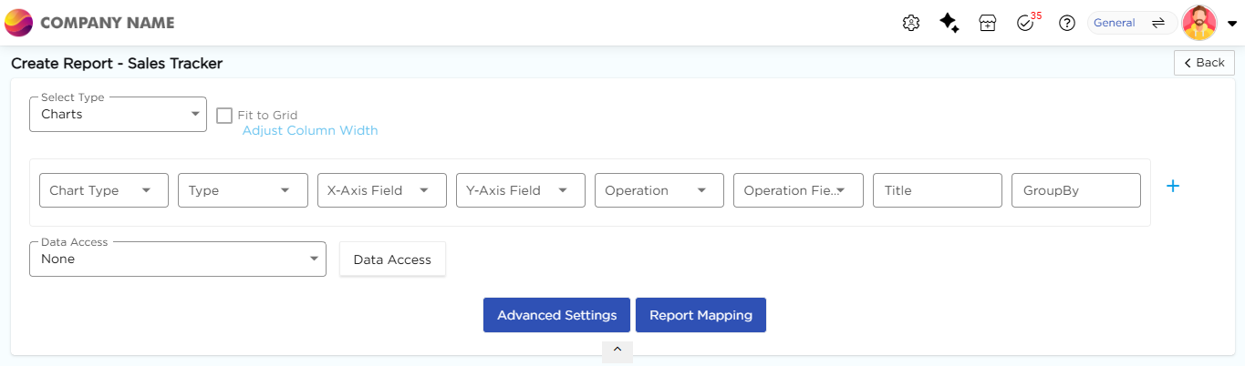 For details on Advanced Settings, Report Mapping, and GroupBy configuration, refer to the Chart Configuration Overview article.
