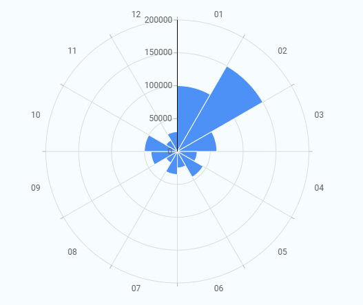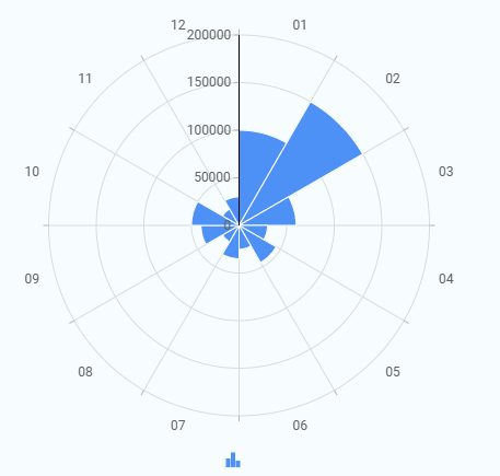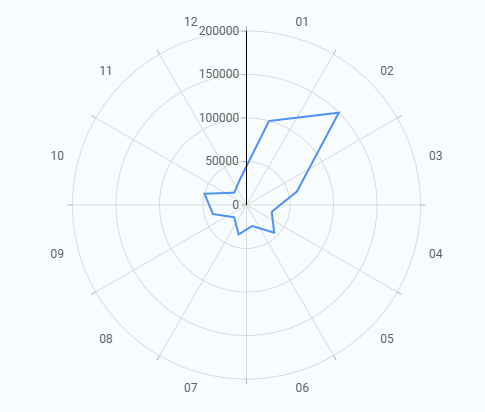 A Polar Chart displays values around a circular axis. Each category is placed at equal angles, and the value is shown by its distance from the center. It is used to compare category-wise values using a radial layout instead of a standard X and Y axis.