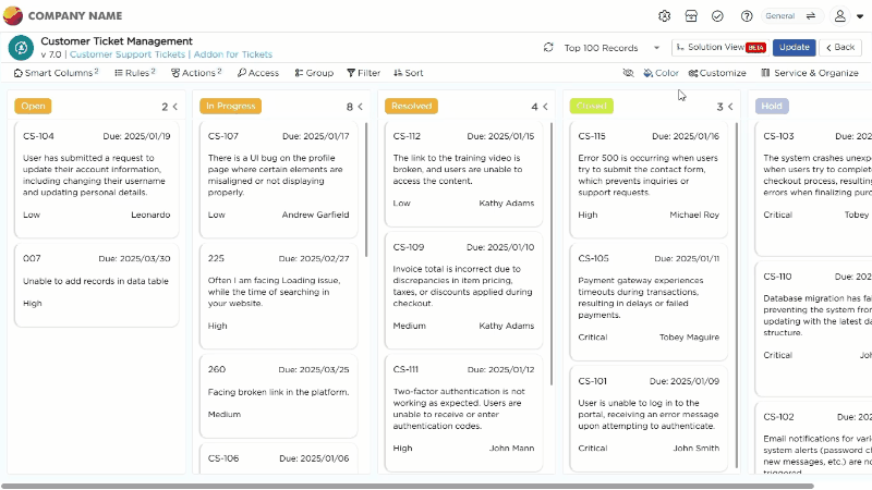 Once access is configured, you can control how data is grouped, displayed, and styled in the Kanban View.