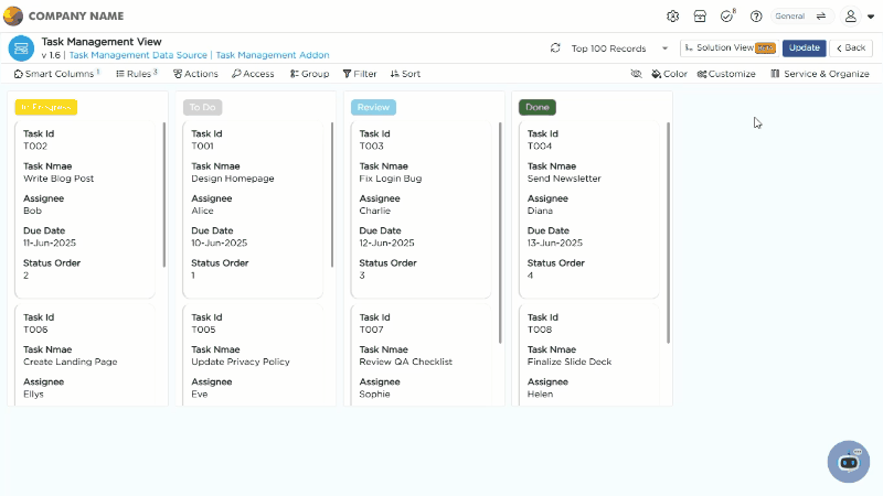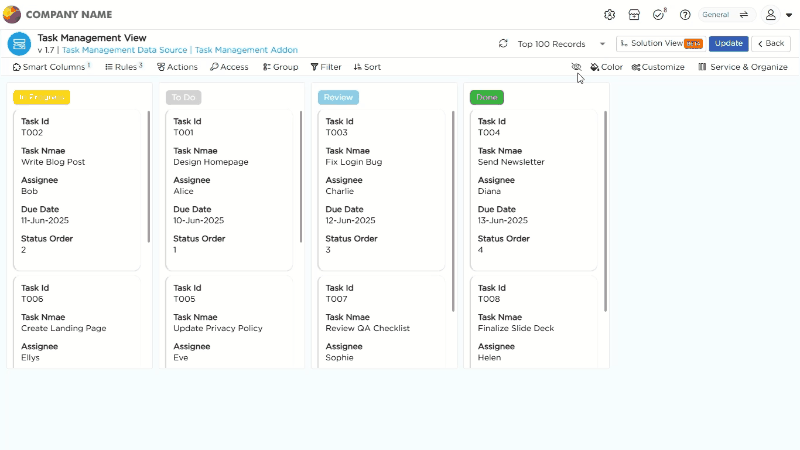Customize Settings: Personalize the overall look and behavior of the Kanban View.