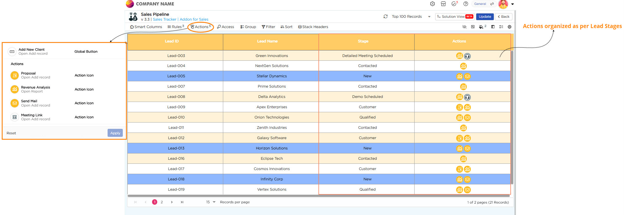 These actions appear directly in the List View and stay aligned with the current stage of each lead.