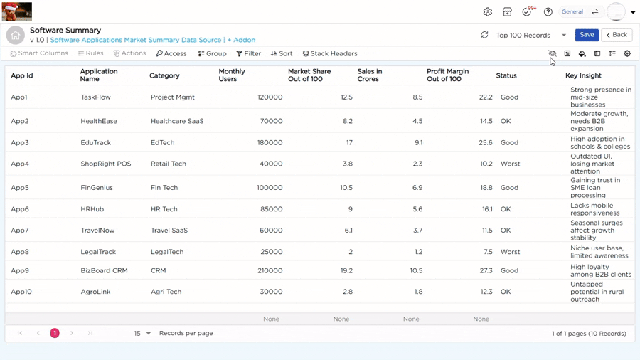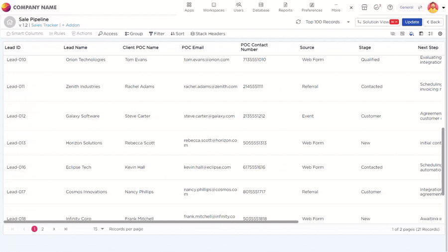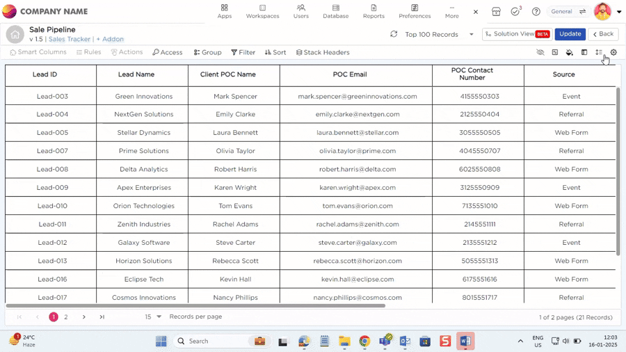 When you’re working with a massive dataset, it can be tough to keep track of the most important columns. That’s where the Freeze Columns option steps in. It lets you lock the essential columns in place, so as you scroll through records, the key information stays in view. This makes it much easier to navigate through the data and stay focused on what matters.