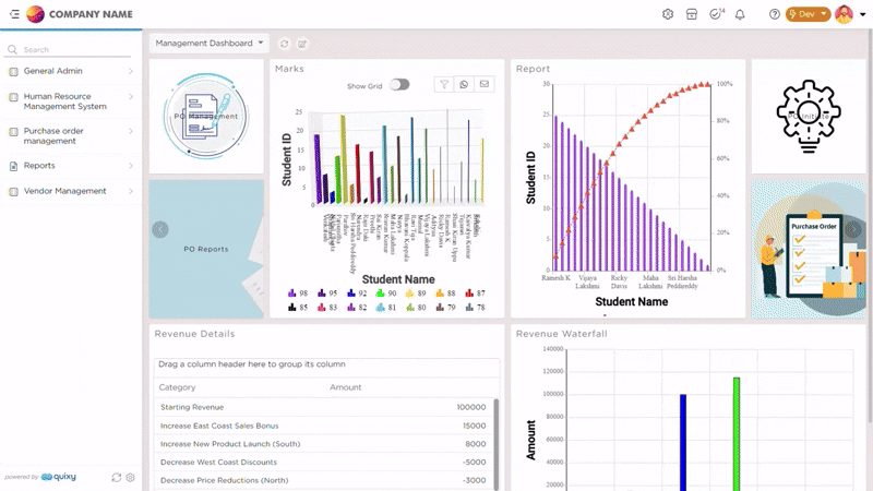 8. From the field palette, drag and drop the required fields on the canvas to define the columns of data table.