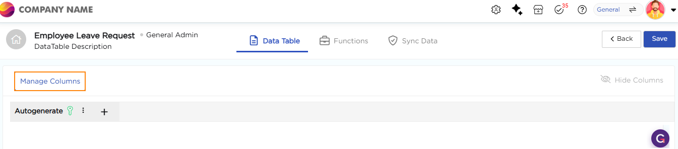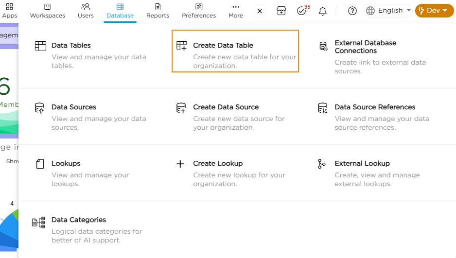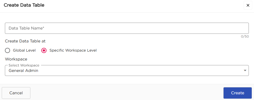 2. Choose Create from Scratch to create your data table. A Create Data Table pop-up window will appear.