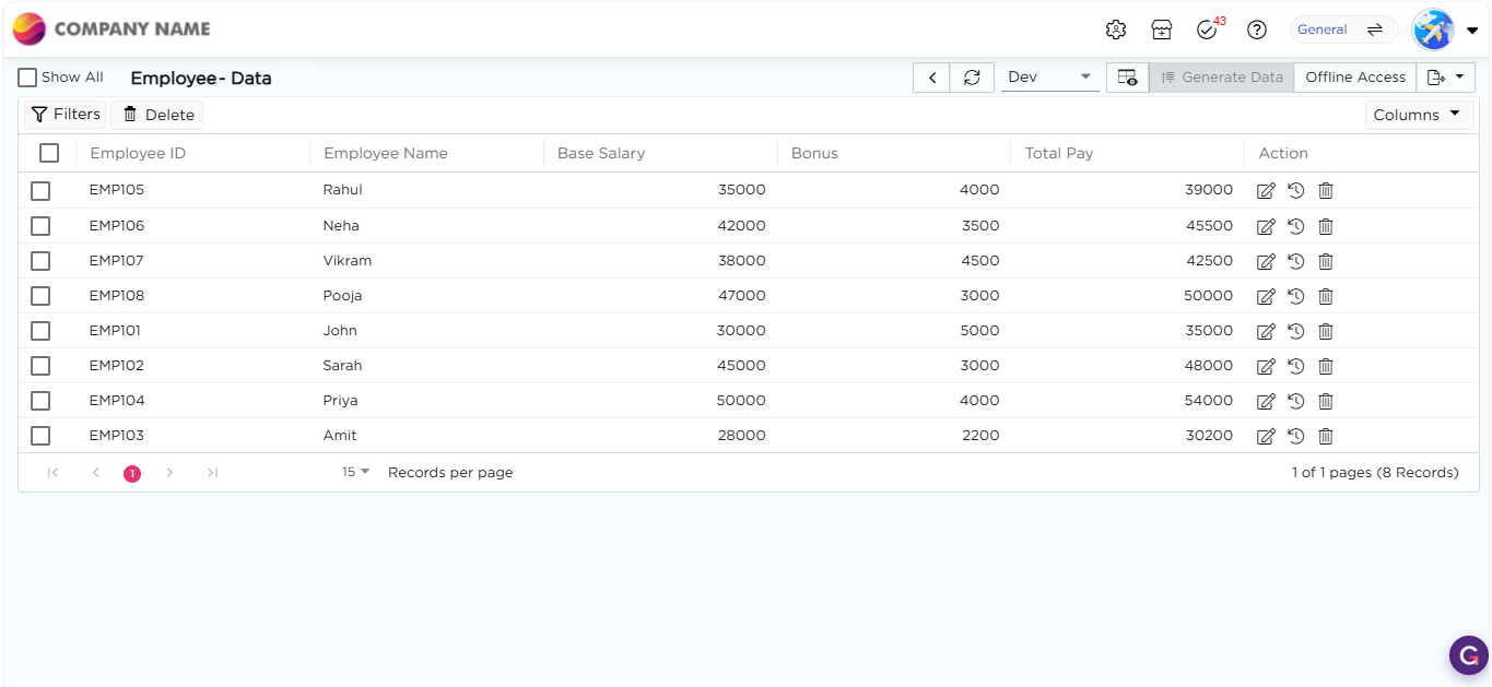 8. To view the created data table in the Data Tables List page: